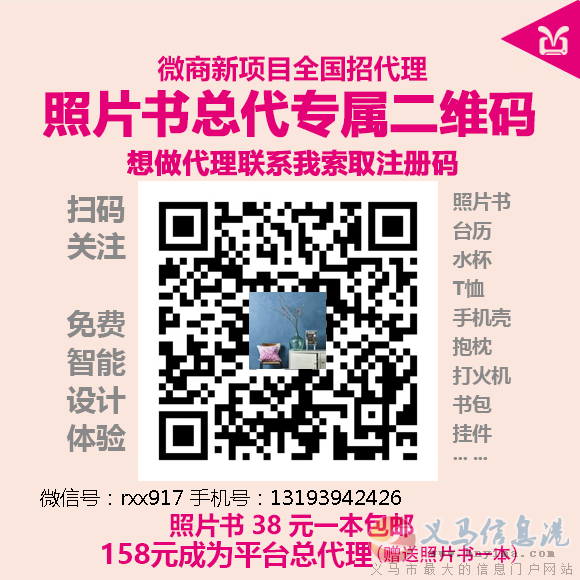 照片書,就是把你手機或電腦里存的照片制作成冊,方便翻閱;或者單位企業(yè)形象宣傳;美容、美甲、美發(fā)、保險、化妝品牌等項目的產(chǎn)品宣傳冊;任何款照片都可以!!你來圖,我定制!包括上圖顯示的保溫杯、兒童書包,琉璃車掛、水晶旋轉(zhuǎn)魔方、胎毛印章等等上百種個性定制!快遞免費包郵!招收代理或者網(wǎng)絡(luò)業(yè)務(wù)員,無囤貨、無風(fēng)險,兼職即可,男女不限。微信同號:13193942426