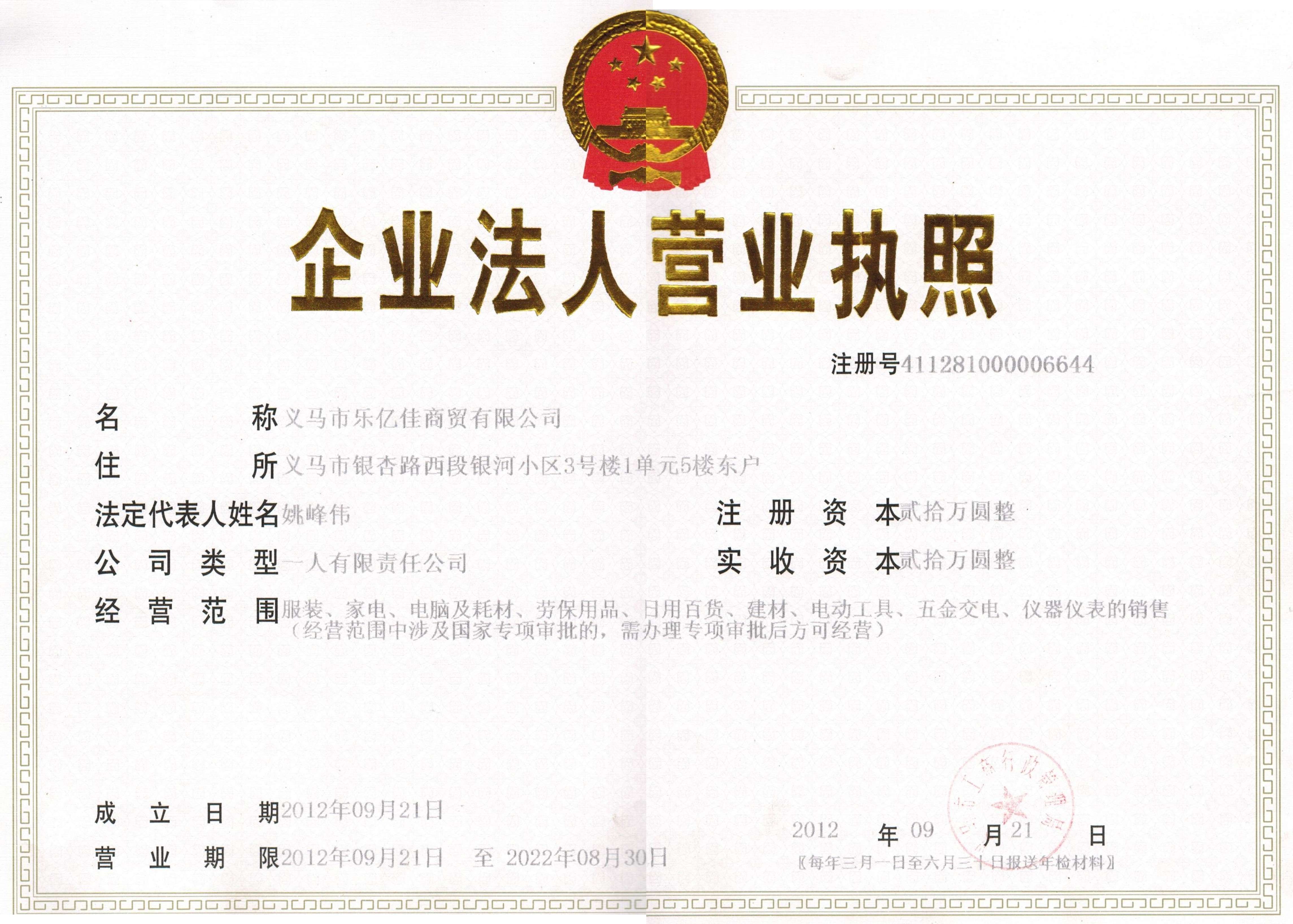 樂億佳組織機構(gòu)代碼證